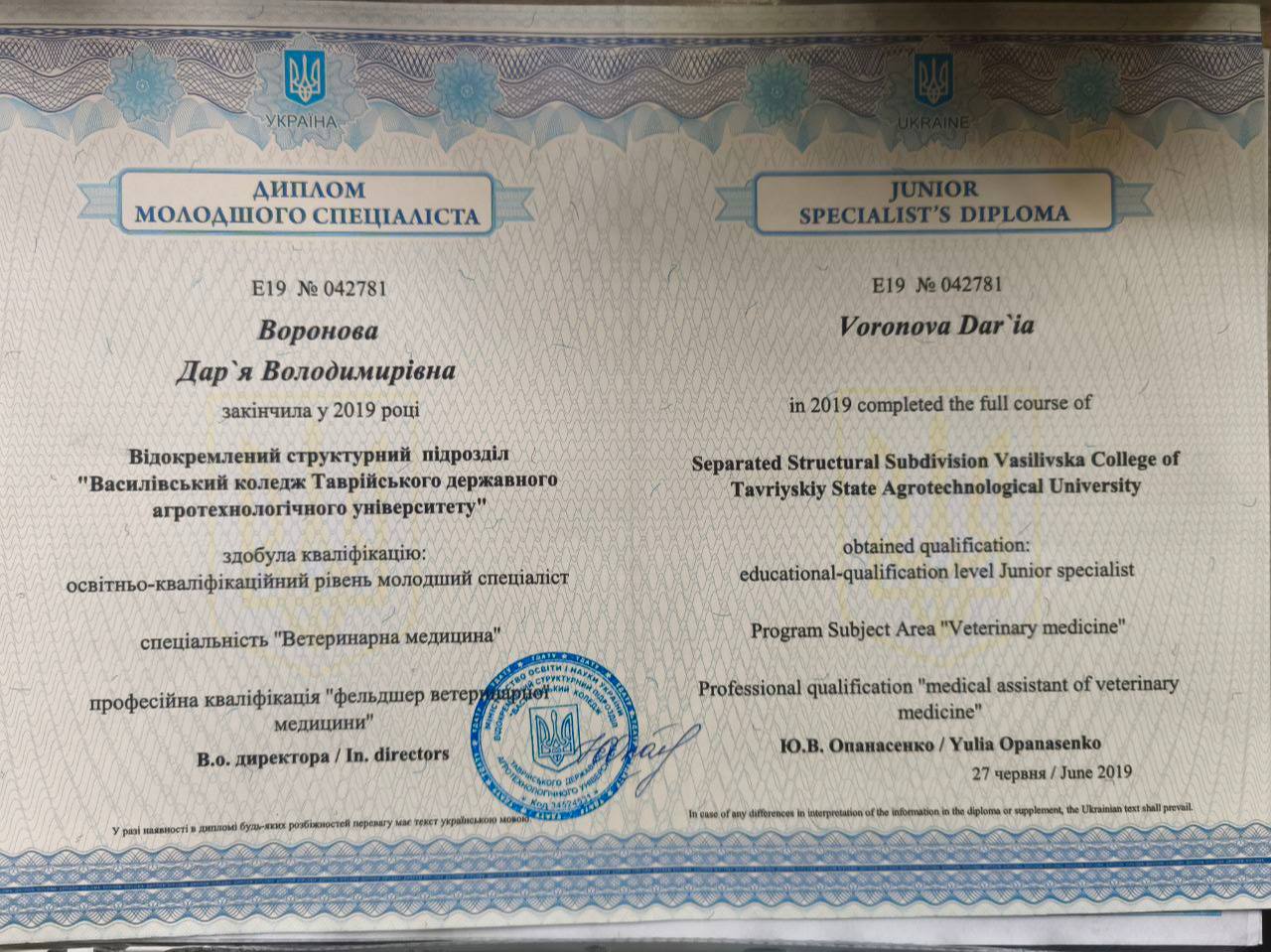 Прошла стажировку и курсы повышения квалификации - специалист по абдоминальной ультразвуковой диагностике «УЗИ». 2017 г