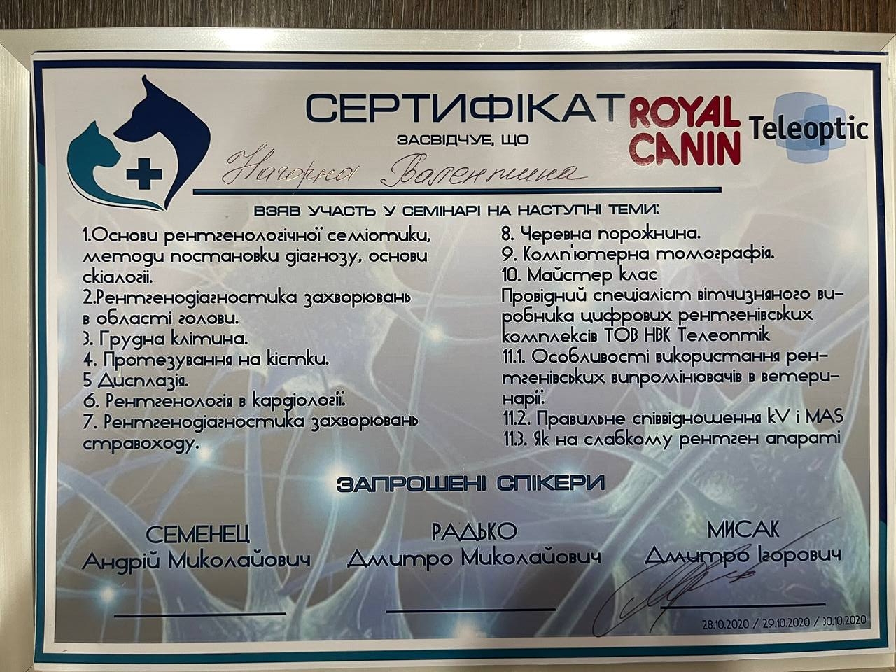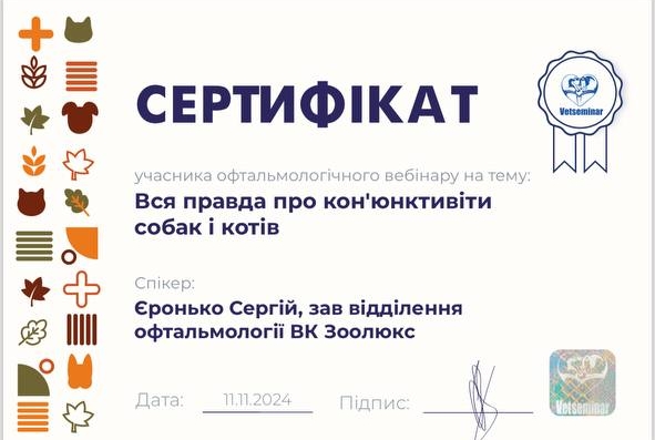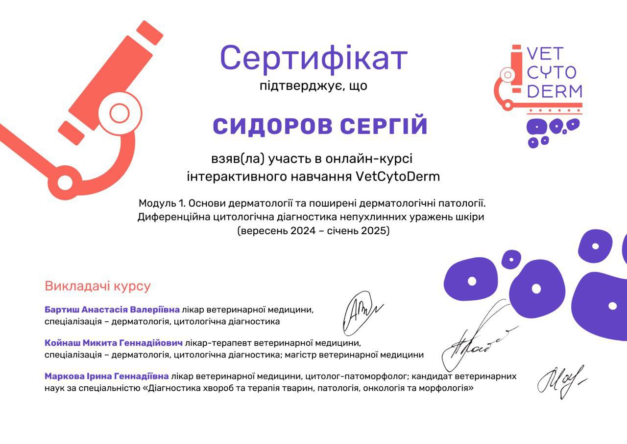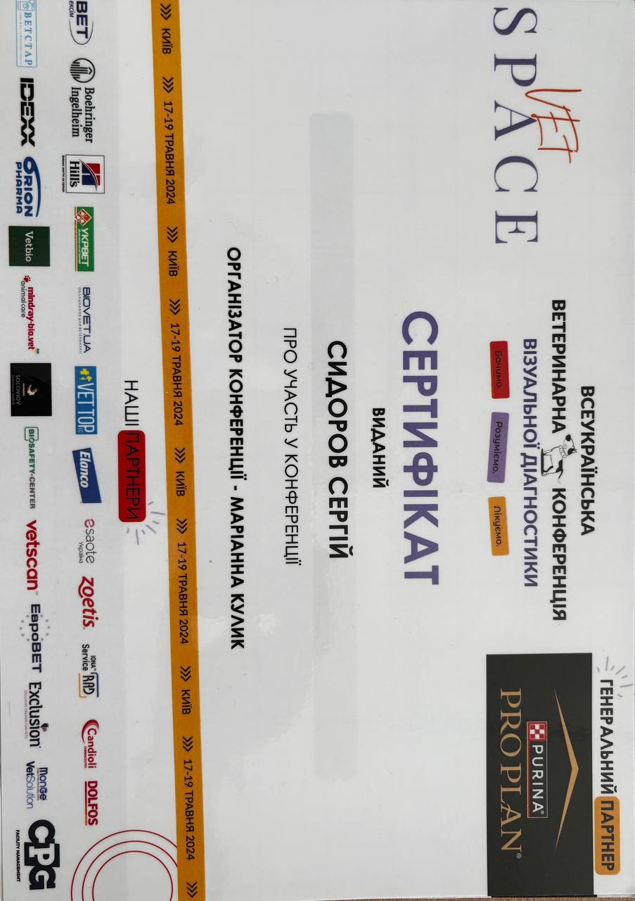 Участник семинара на темы: Гастроэнтерологический пациент: клиническая оценка, тактика обследования, ошибки и трудности в ветеринарной практике. Диагностические исследования при заболевании желудочно-кишечного тракта. Прокинетики, спазмолитики, антисекреторные и антацидные препараты в гастроэнтерологии. Диагностика зуда. Наружный отит. Пищевая аллергия. Атопический дерматит. Революция в контроле зуда. Защита от паразитов: новейшие разработки от компании «Зоэтис». 2017 г