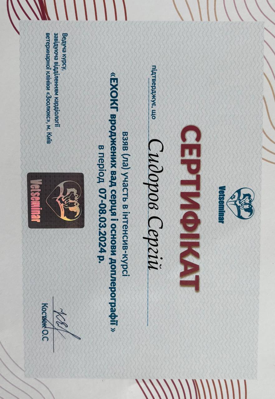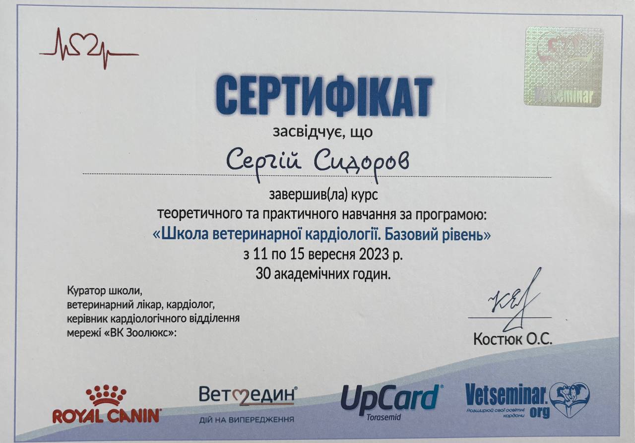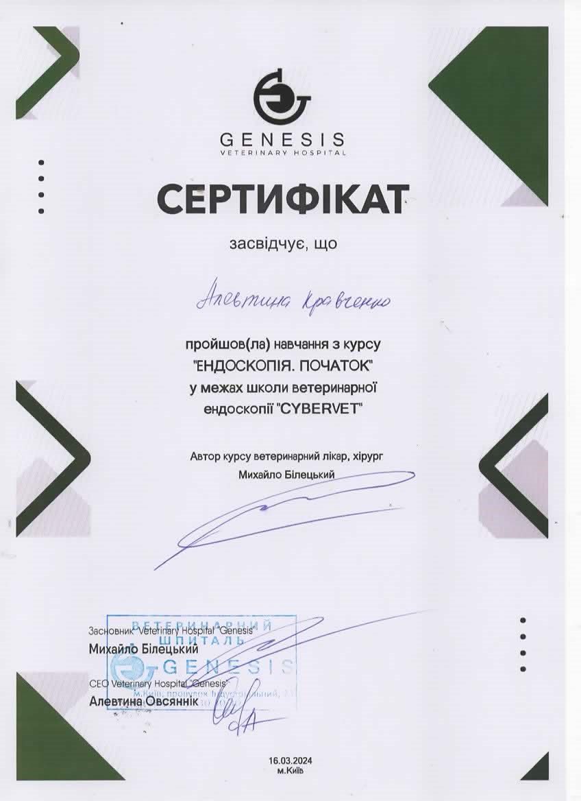 Практика в частной ветеринарной клинике г. Запорожье. 2013 - 2014 г