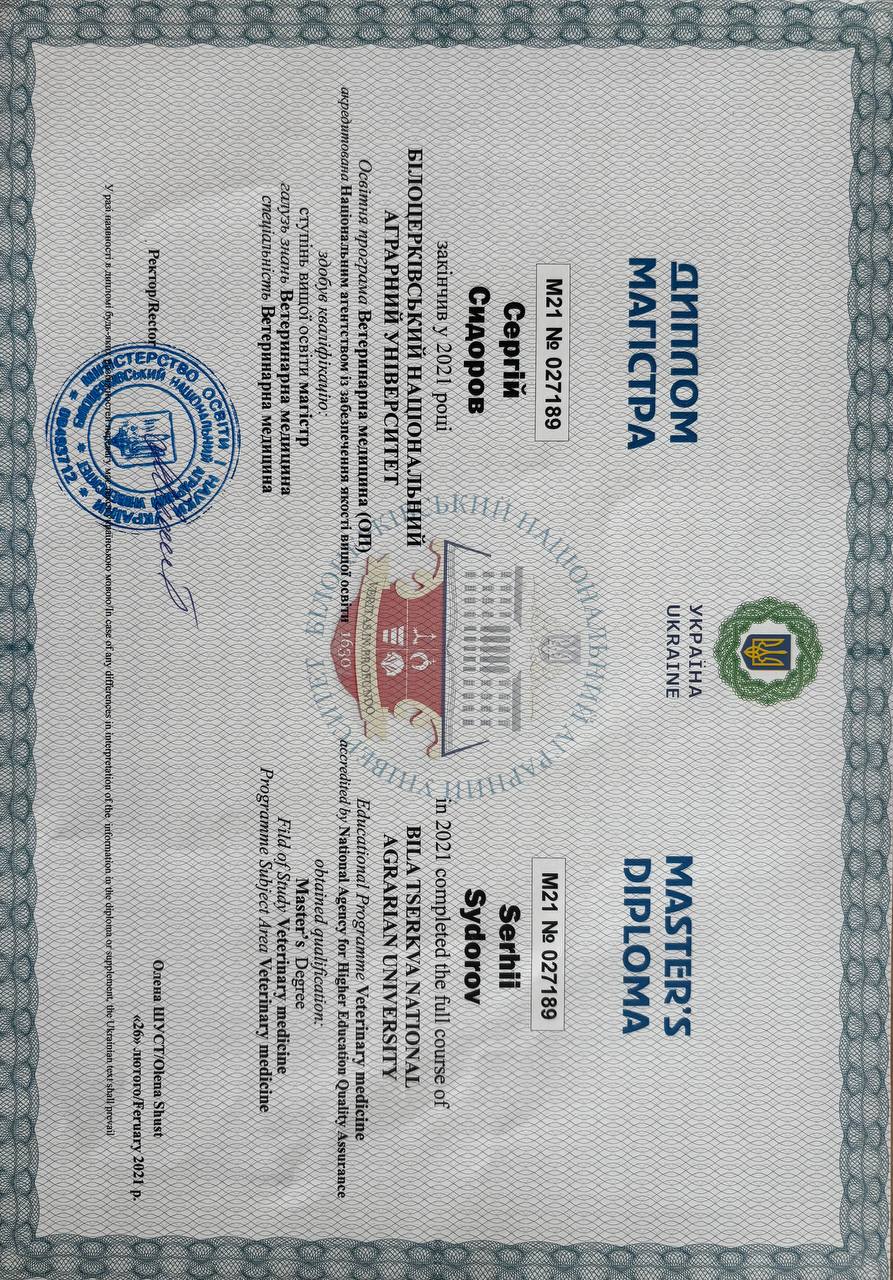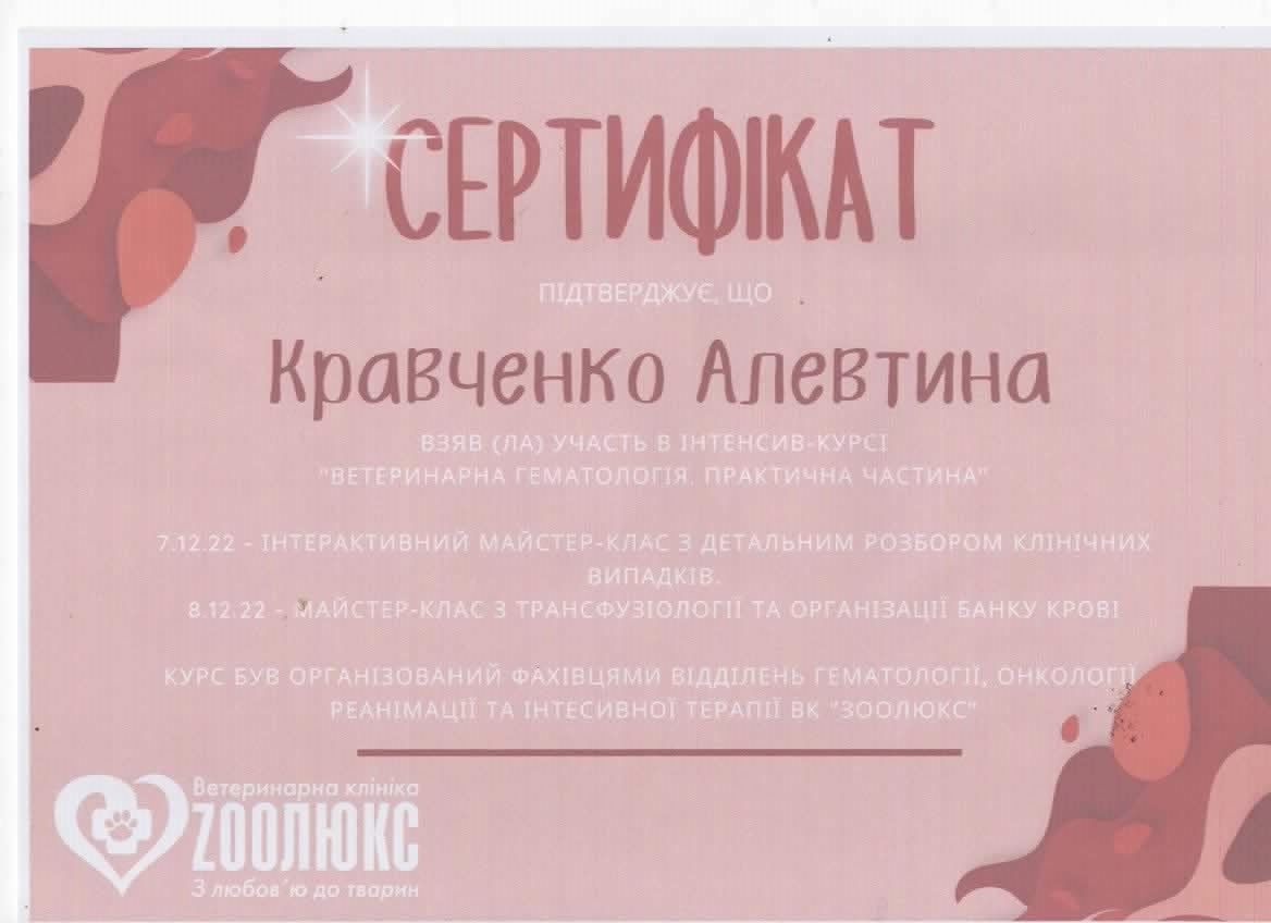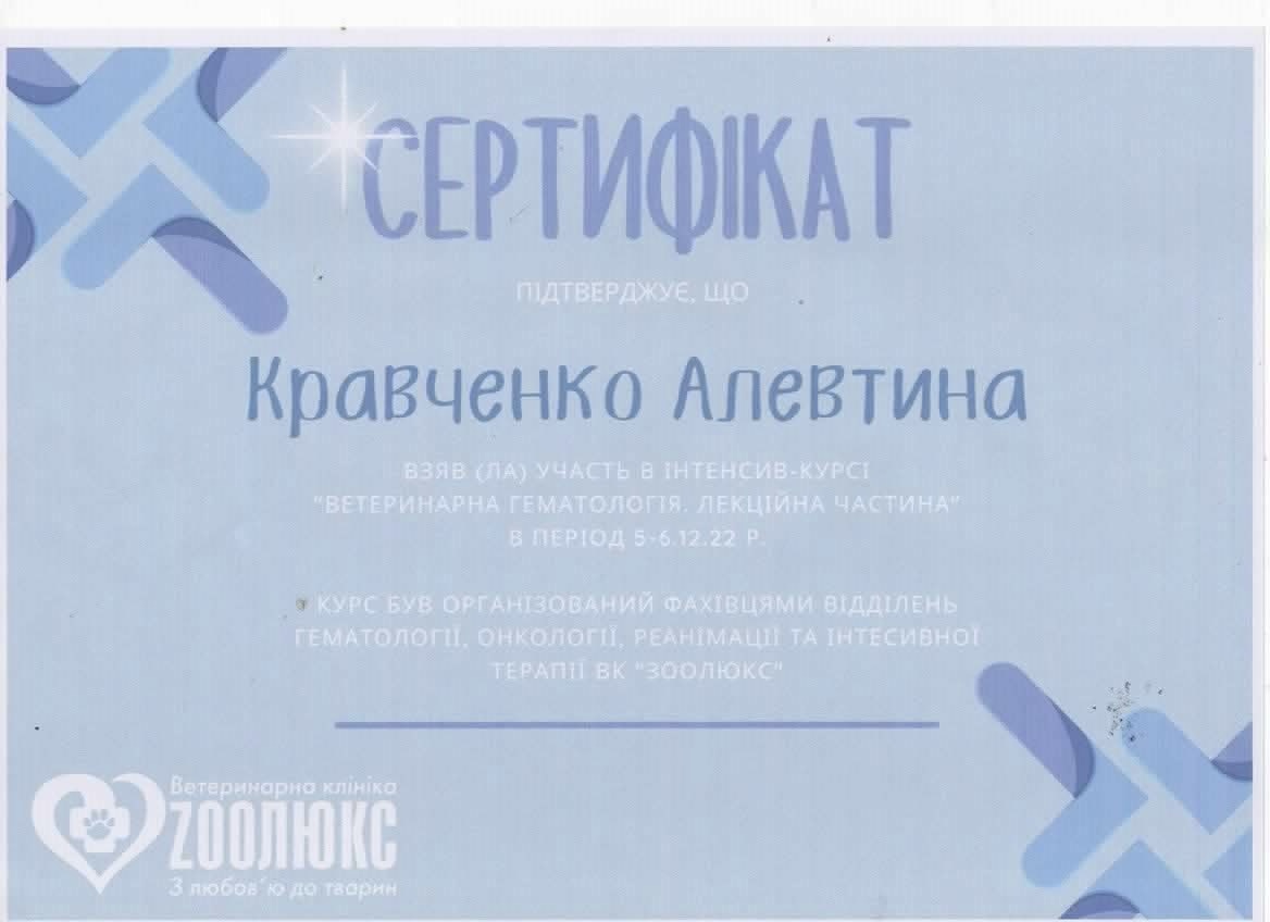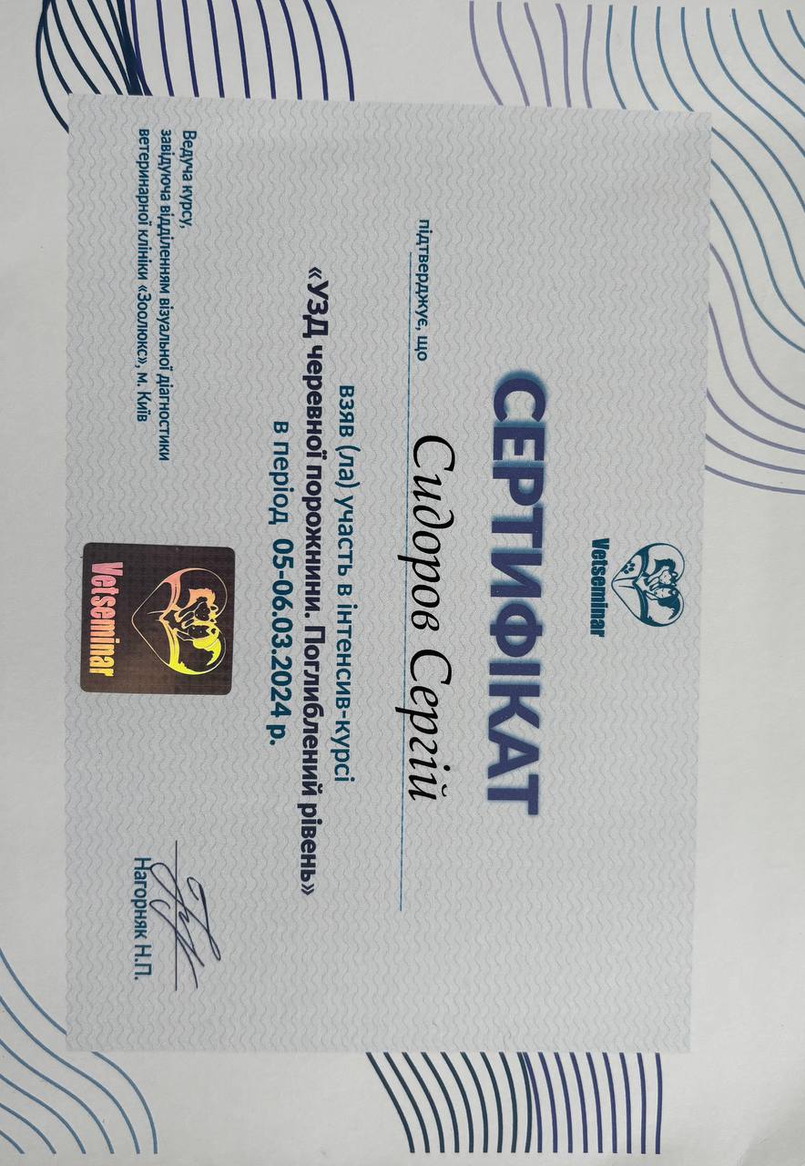 Практика в частной ветеринарной клинике г. Запорожье. 2013 - 2014 г