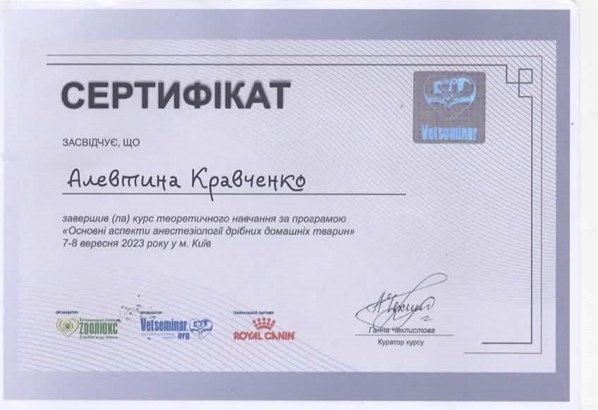 Курс «Основные аспекты анестезиологии мелких домашних животных» 2023 г