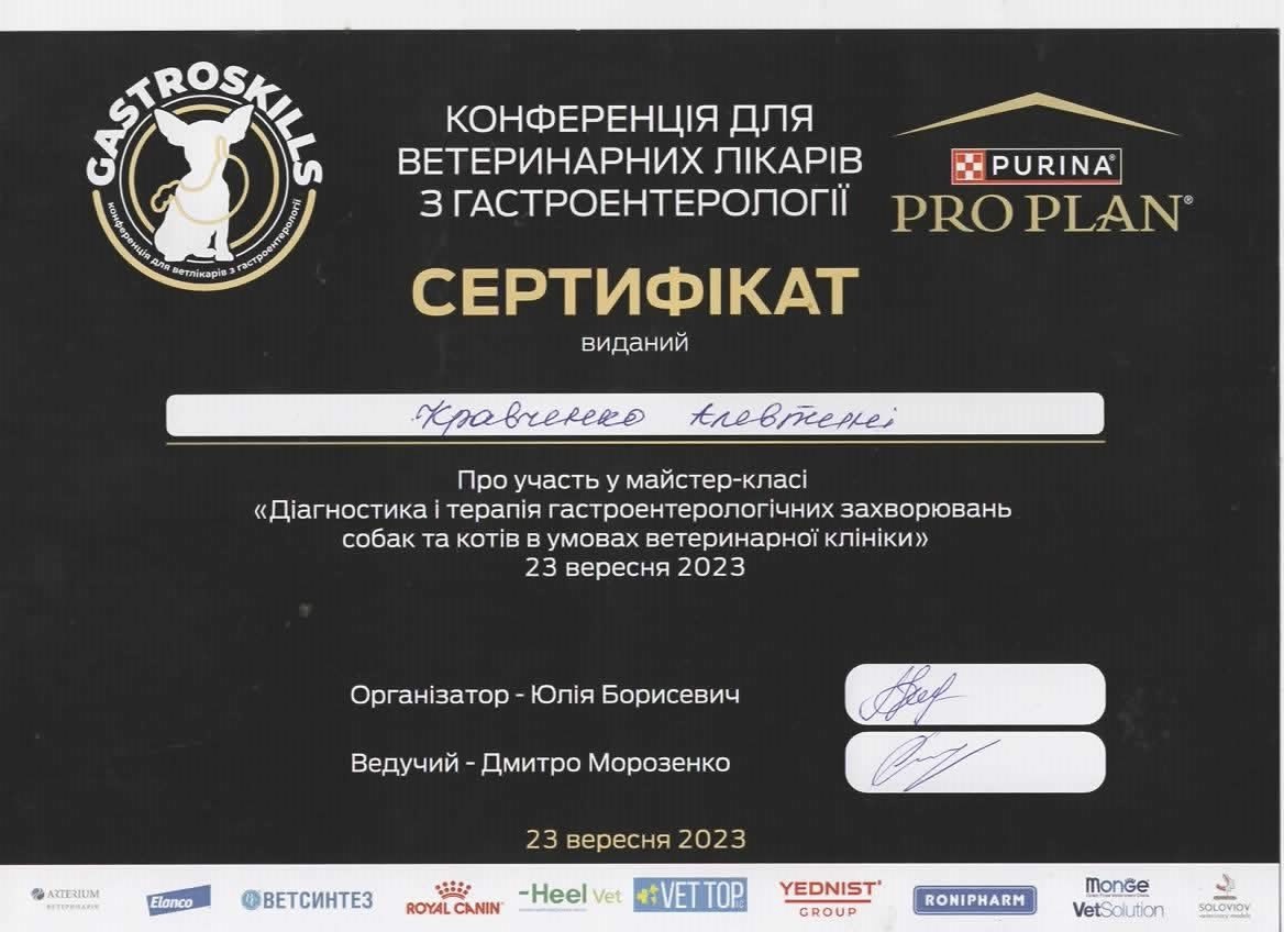 Мастер-класс «Диагностика и терапия гастроэнтерологических заболеваний собак и котов в условиях ветеринарной клиники» 2023 г
